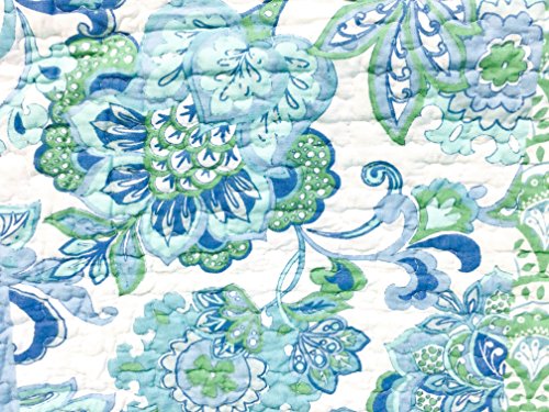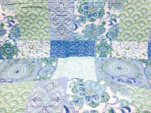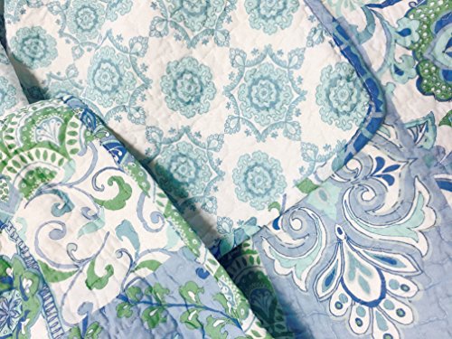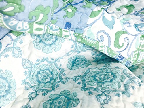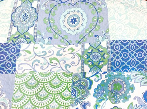 Cozy Line Home Fashions Peace Love Bedding Quilt Set, Turquoise Blue Aqua Green Flower Pattern Patchwork 100% Cotton Reversible Bedspread, Coverlet for Women