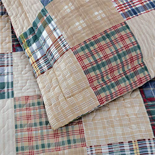 ❤Red Blue Plaid Quilts Men Patchwork Quilt Set Queen/Full Size includes 1 Quilt(90″*90″) 2 Standard Pillow shams(20″*26″+2″)Country Patchwork Quilt Set,Blue White Plaid Bedspread,Summer Plaid Printed Quilt Coverlet , Perfectly decorate your bedroom