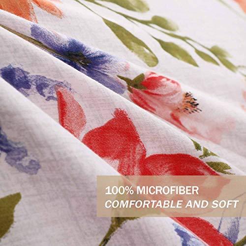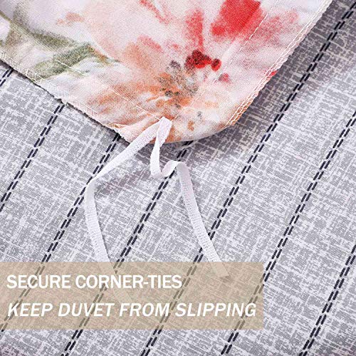 Nanko Bedding Duvet Cover Set Queen, 3 Pieces 1200-Thread Floral Microfiber Down Comforter Quite Cover Zipper & Tie for Women & Men?¡¥s Bedroom, Luxury Guestroom Deco